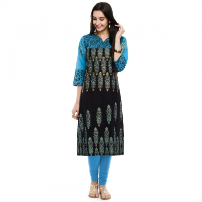 blue with black print straight kurti